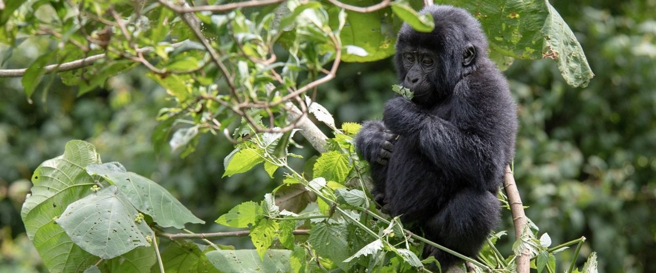 One of Africa’s oldest and richest forests – one of few that predate the arid conditions of the last ice age, 12,000-18,000 years ago – the Bwindi Impenetrable has been weaving itself into tangles across the fissured and folded margin of the Albertine Rift Valley for some 25,000 years. In the process it has accumulated a remarkable biodiversity, thanks also to an 1147m altitudinal range that accommodates habitats ranging from lowland forest at 1,160m to rare Afromontane vegetation above 2,600m. Species counts include 310 butterflies, 88 moths, 200 trees, 51 reptiles and 120 types of mammal. The latter includes several primates, among them chimpanzees, blue monkeys, L’Hoest’s monkey, and, the star of the Impenetrable show; the mountain gorilla.